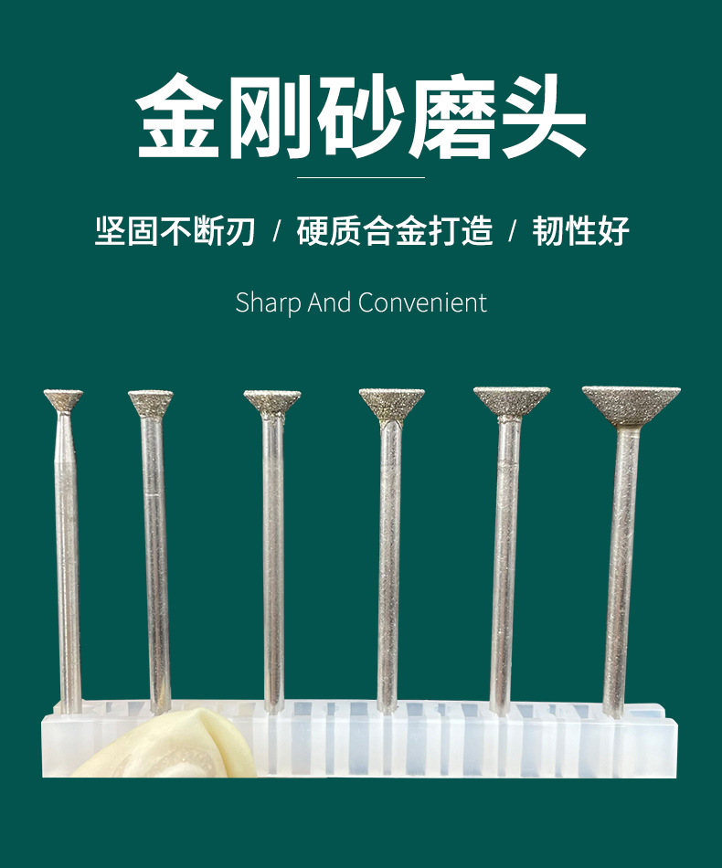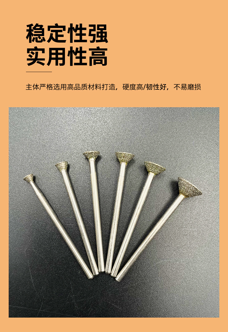 金剛石磨針金剛砂磨頭玻璃石頭刻字玉石開窗去皮雕刻2.35mm柄徑